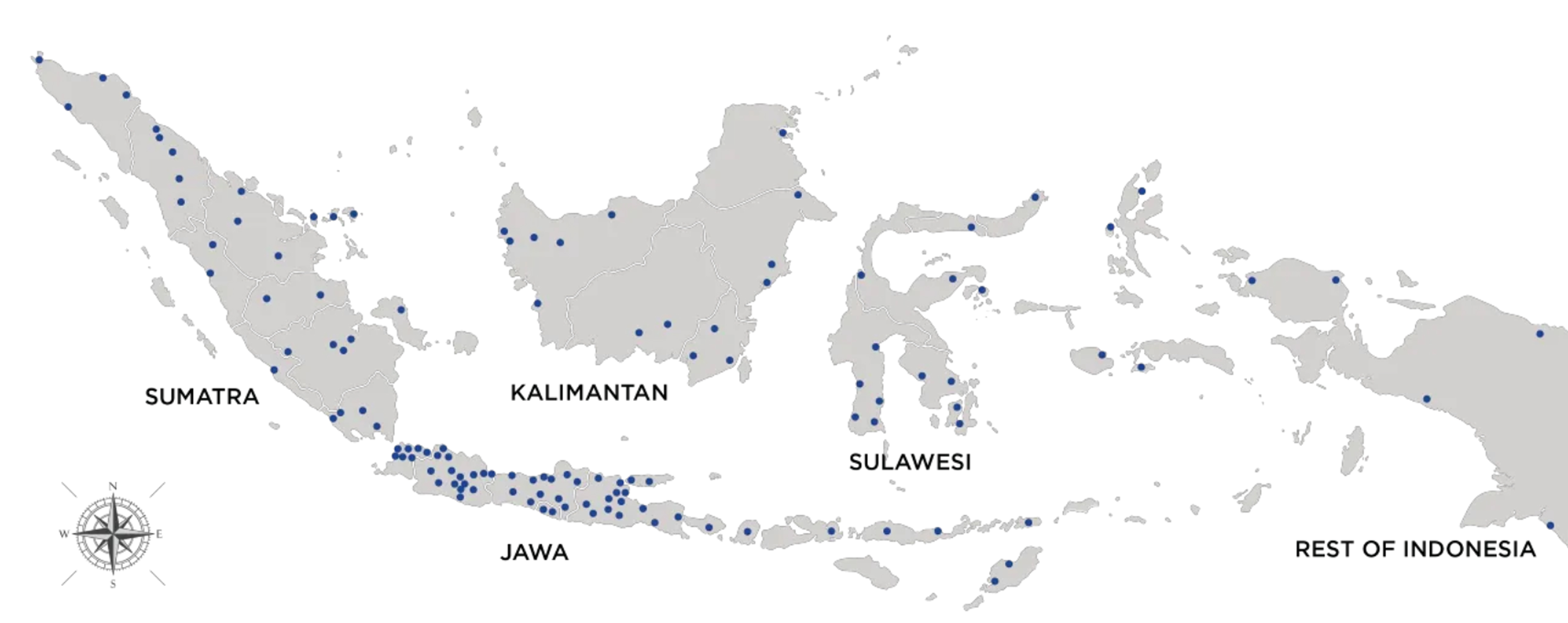 ini (2024), kami telah berhasil mendirikan 139 pusat distribusi di seluruh Indonesia untuk
